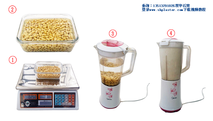 步驟8: 煮豆?jié){前稱3.75克食品級點豆腐石膏粉,食品級點豆腐石膏粉和干豆的比例在1.5:100。