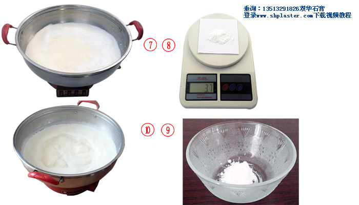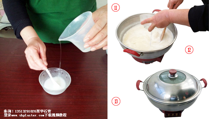 步驟11:把食品級點豆腐石膏粉和水迅速混合,快速攪拌成石膏漿。
